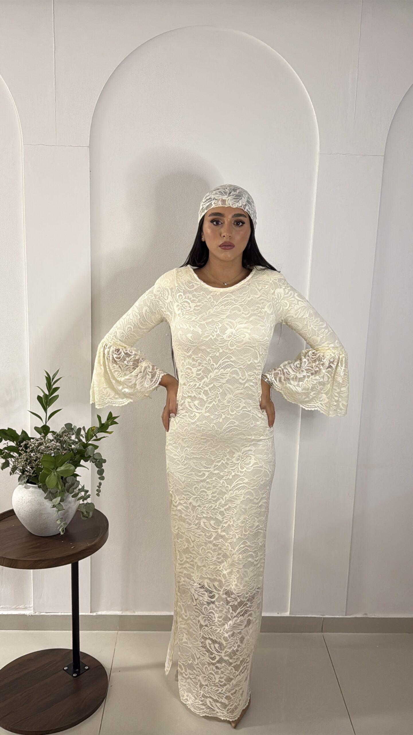 שמלת תחרה מושלמת ויוקרתית מבד תחרה מיוחד עם לייקרה