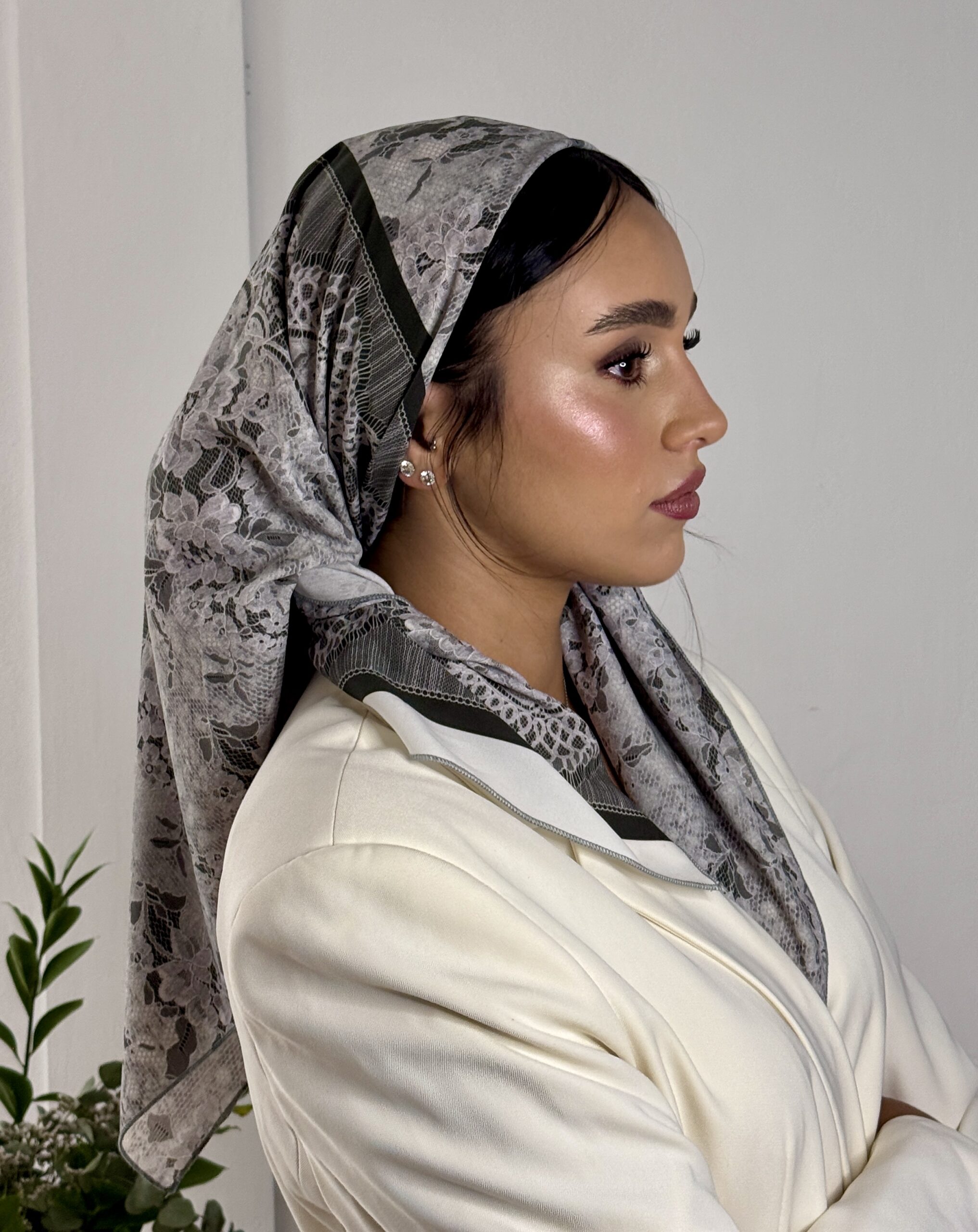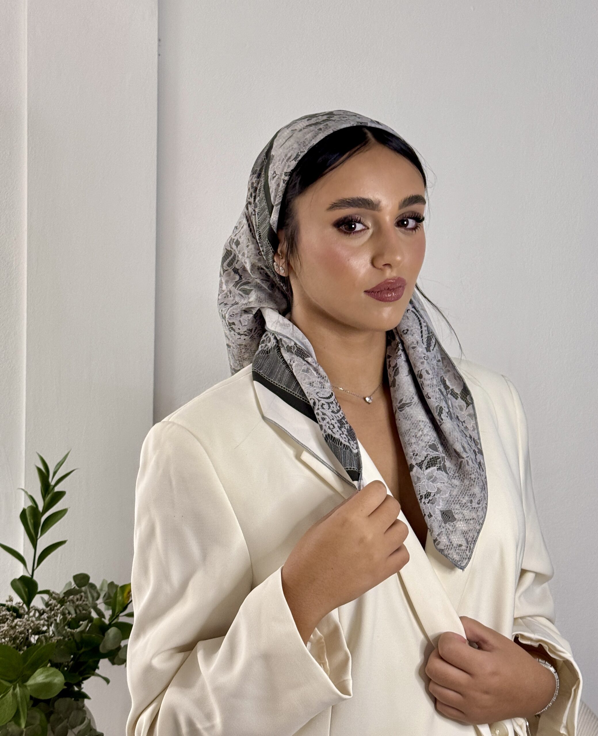 מטפחת מבד משי בהדפס פרחוני מיוחד – שנראה כמו תחרה