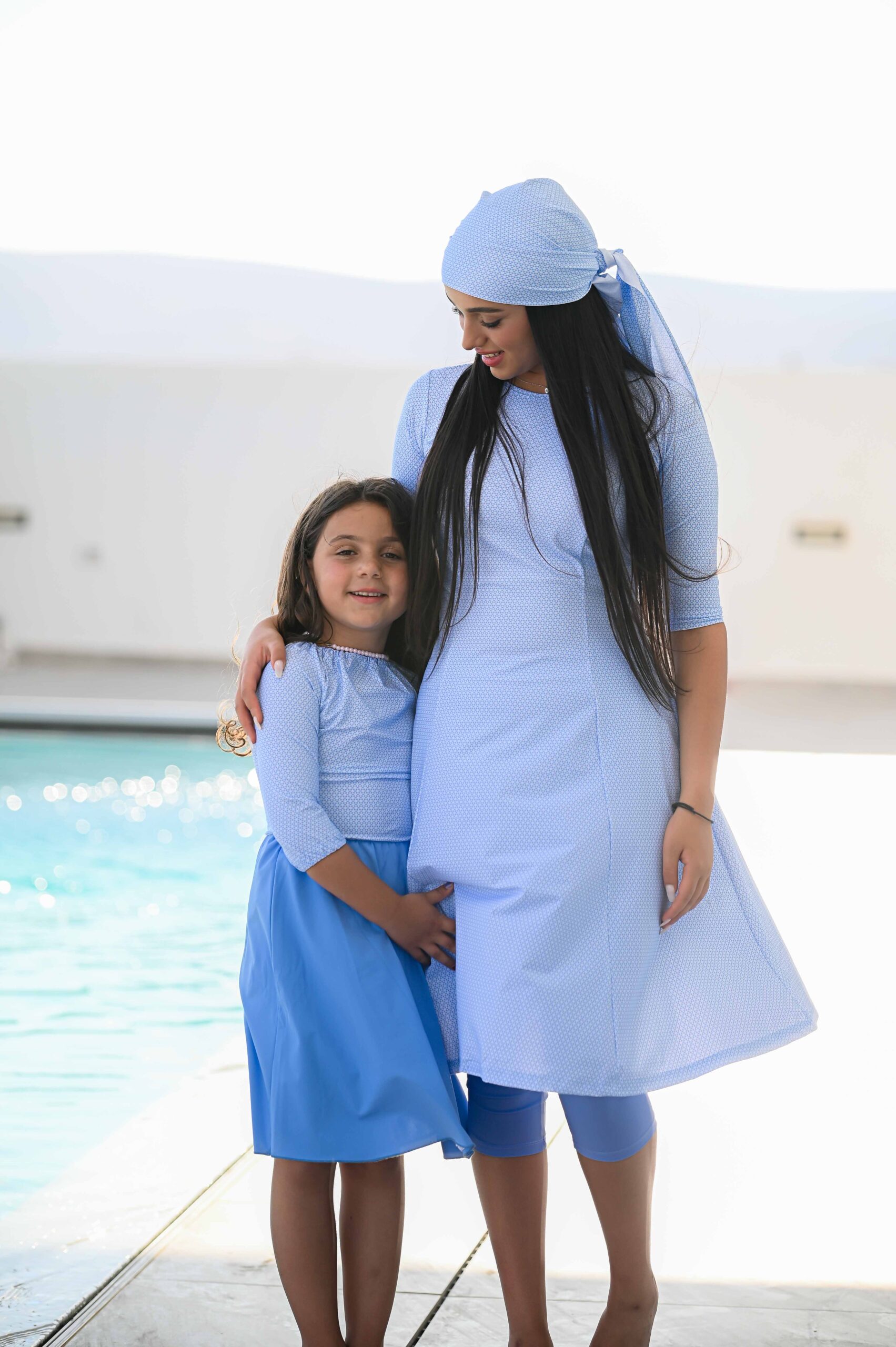 בסוף השמלה תפורים תיקתקים כך שהבגד ים לא צף במים ונוח מאוד לשחייה!